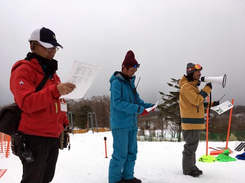 コースディレクターのお二人とスノータウンYeti支配人さんより競技説明。