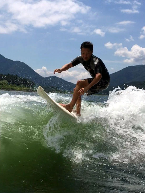 久しぶりのボートサーフィンでも余裕のノギワさん