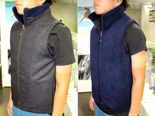 片面ウール&片面ボアを使用した、リバーシブルベストになります。