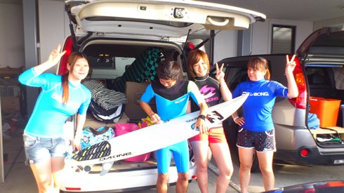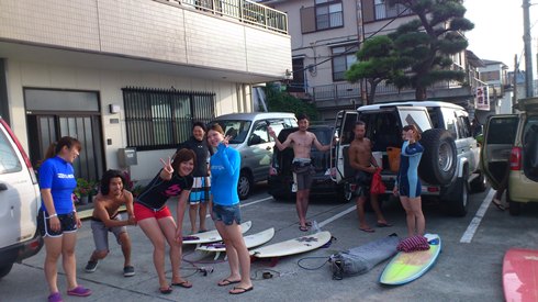 集合し、サーフィン談義に