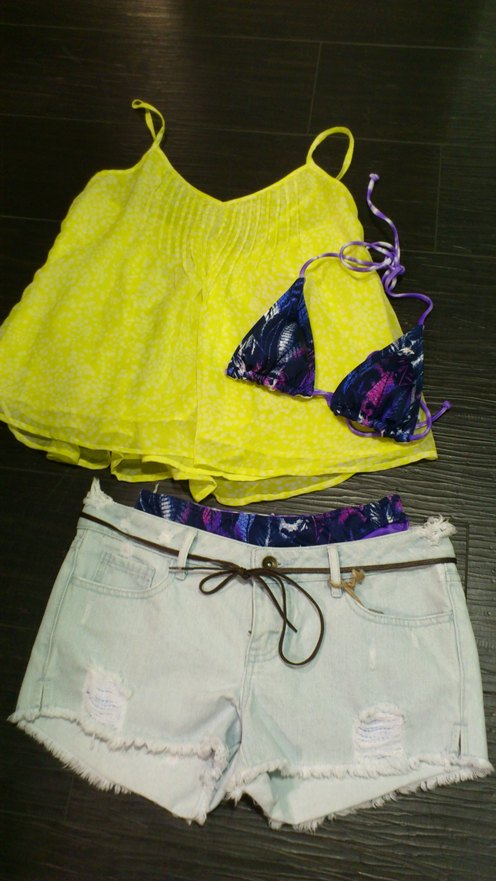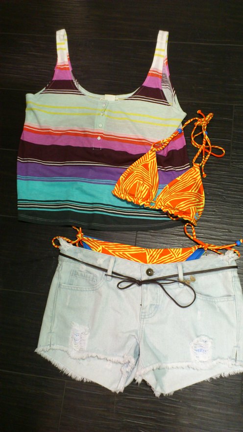 ビーチでも待ちでも、水着の上にTシャツやキャミを