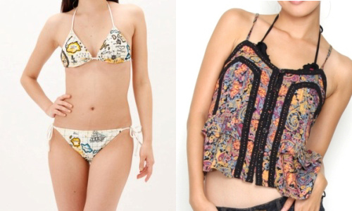 BILLABONGらしいカラフルなエスニック柄ホルタービキニ。