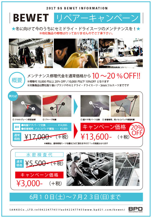 ※対象商品:弊社取扱ブランドのセミドライ・ドライスーツ・3 mmフルスーツに限り。