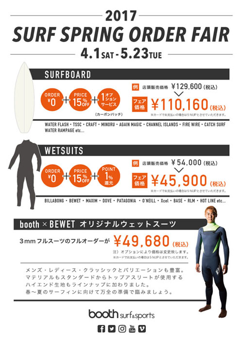 サーフ・オーダーフェアーについて更に詳しくは⇒2017 SURF SPRONG ORDER FAIR