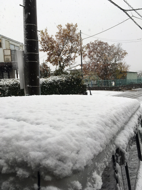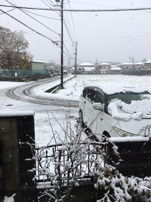 朝、6時ぐらいに雨から雪に変わり、辺りはすっかり雪景色になっていましたー