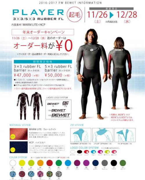 サーファーの皆様には快適なウェットスーツで寒い冬を乗り切って頂きたいと思います!