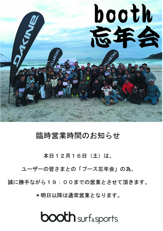 本日12月16日(土)は19:00までの営業となります。